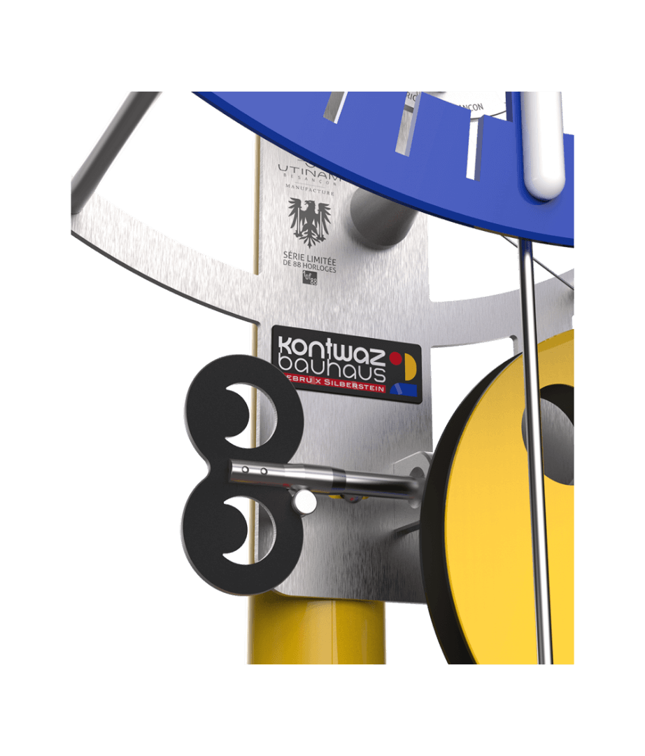 Đồng hồ Kontwaz Bauhaus 2 kết hợp sự độc đáo trong các tác phẩm cơ khí nghệ thuật của Philippe Lebru với cảm hứng Bauhaus và những gam màu đặc trưng của Alain Silberstein. Tuyệt phẩm UTINAM độc nhất này, được khai sinh và chế tác tại Besançon, mang chữ ký của cả hai nghệ sĩ và tôn vinh tinh thần đổi mới thông qua thiết kế kim giây nhỏ lệch tâm.