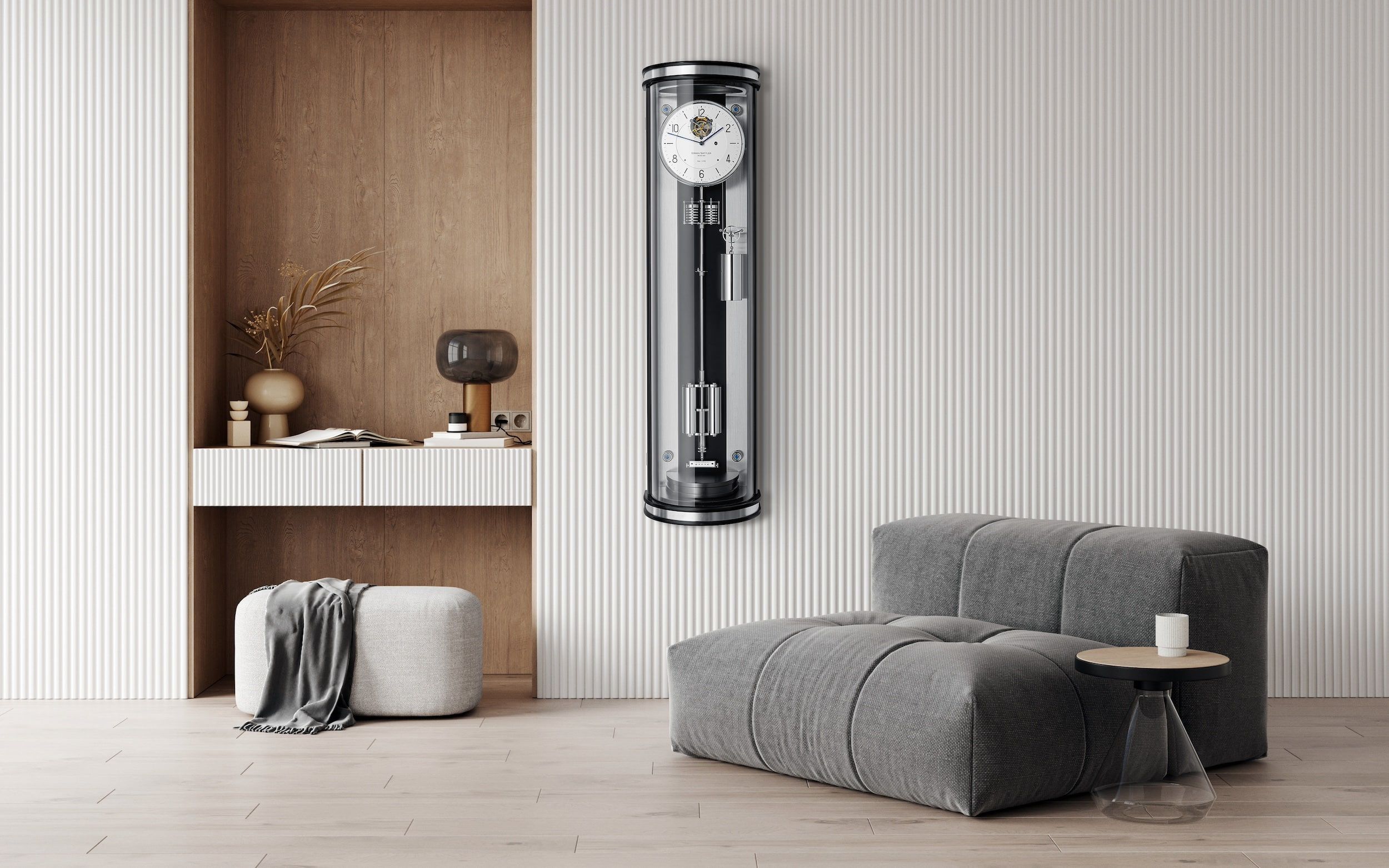 Những đường cong mềm mại thay cho các góc cạnh sắc nét giúp thiết kế hòa hợp hoàn hảo với không gian sống hiện đại. Một mẫu đồng hồ quả lắc chính xác vừa tối giản, hiện đại nhưng vẫn mang nét tinh nghịch – với sứ mệnh hiển thị thời gian chính xác nhất có thể.